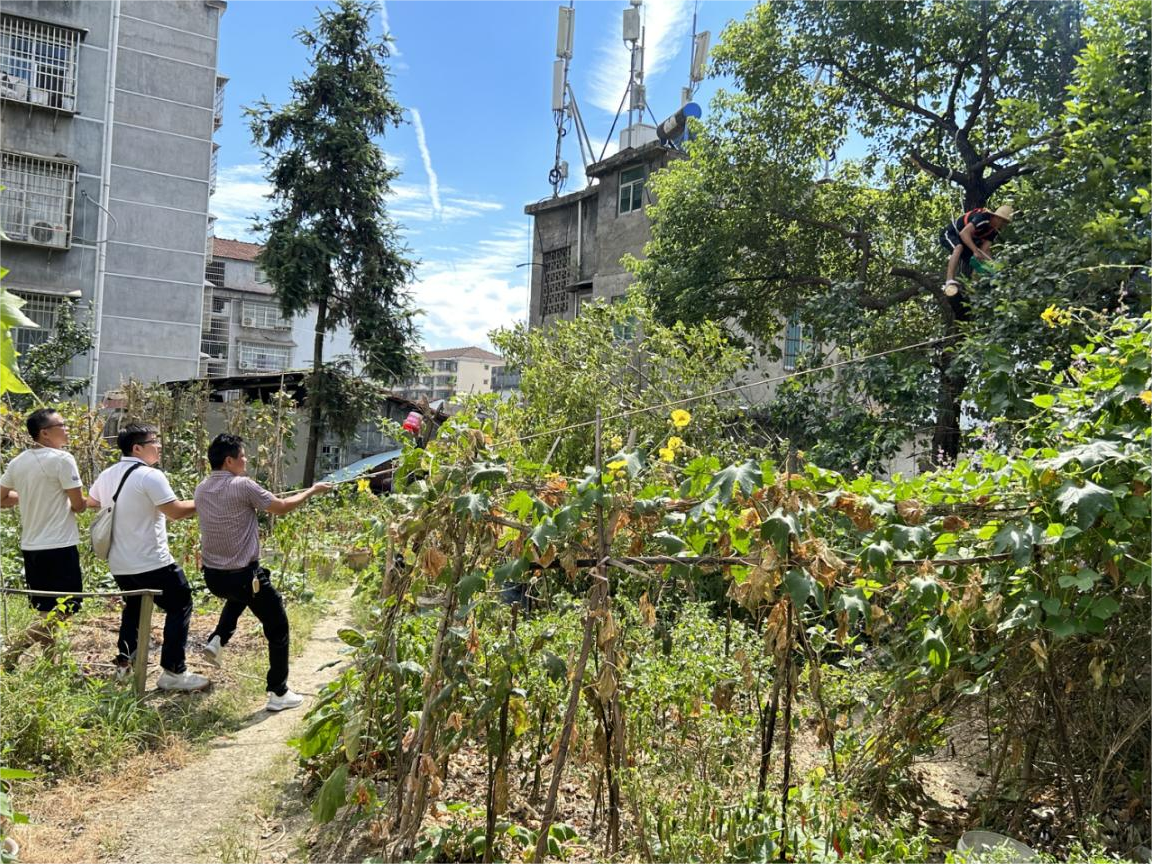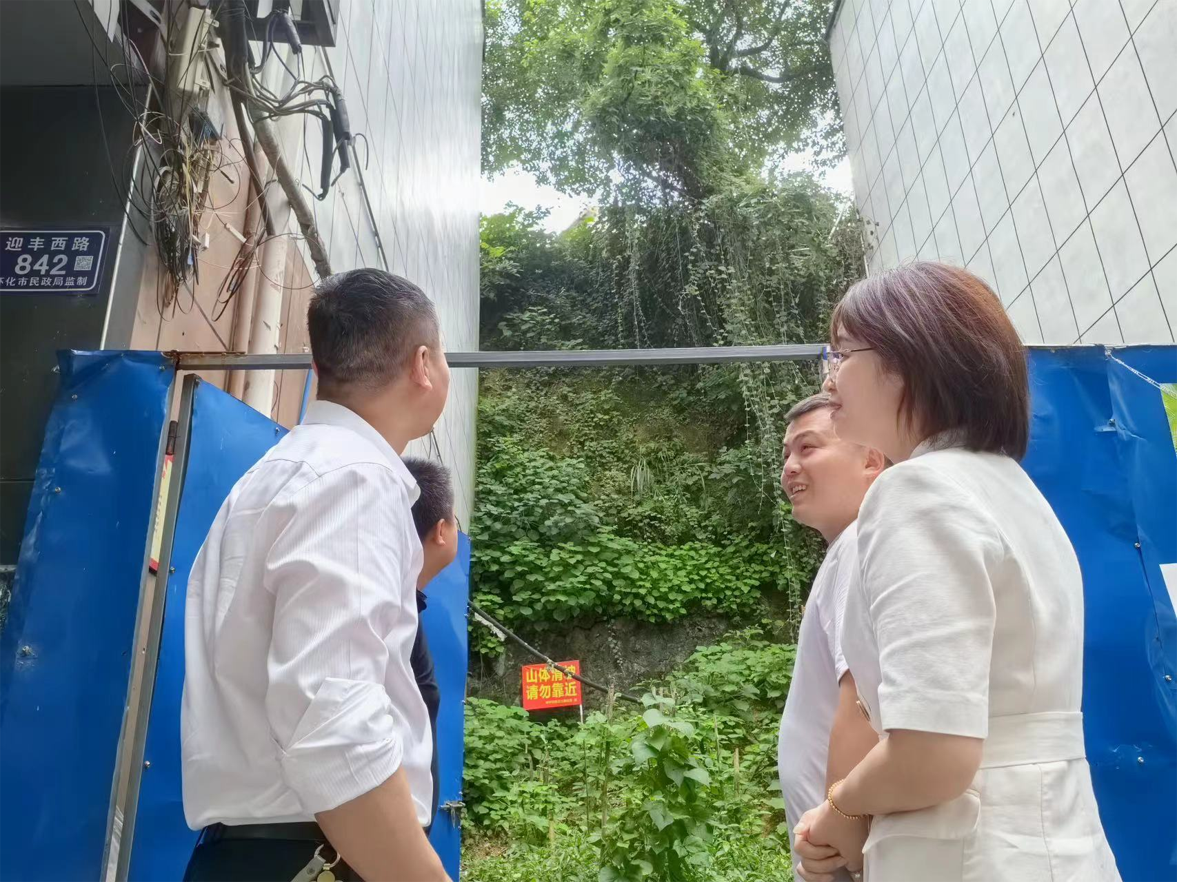 為保障人民群眾生命財(cái)產(chǎn)安全,消除安全隱患,市城建投公司在防汛期間開(kāi)展安全隱患點(diǎn)排查過(guò)程中,發(fā)現(xiàn)芷江路社區(qū)位于迎豐西路842號(hào)門(mén)店背后高邊坡一棵香樟樹(shù)下土壤流失嚴(yán)重,存在傾倒風(fēng)險(xiǎn),危及房屋安全。作為該社區(qū)的后盾單位,市城建投立即派全資子公司工程建設(shè)公司專業(yè)人員現(xiàn)場(chǎng)查看,及時(shí)對(duì)接,并于7月18日上午,組織城發(fā)物業(yè)公司5名工作人員帶著安全繩、電鋸等工具到達(dá)現(xiàn)場(chǎng)開(kāi)始作業(yè)。