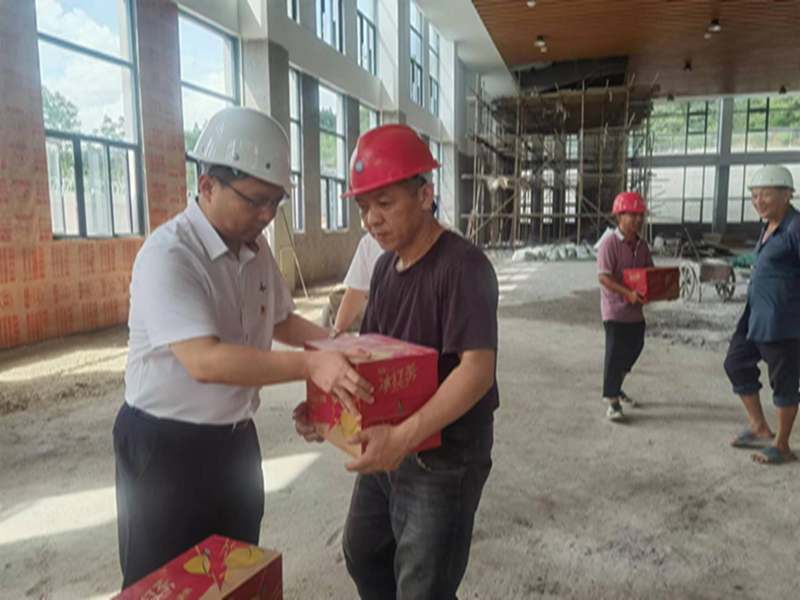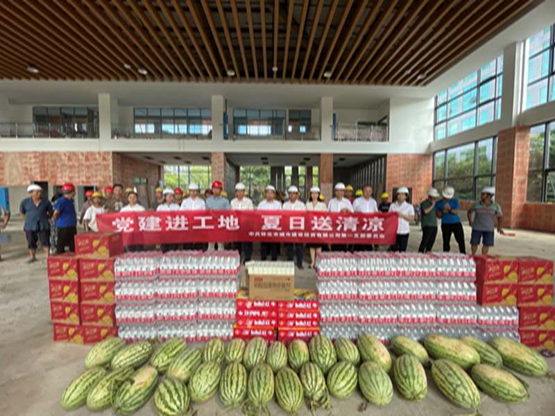 為切實(shí)關(guān)愛關(guān)懷施工一線人員, 7月21日下午,中共懷化市城市建設(shè)投資有限公司第一支部委員會(huì)組織黨員干部深入在建項(xiàng)目施工現(xiàn)場開展“黨建進(jìn)工地 夏日送清涼”主題黨日活動(dòng)。給在高溫下工作的一線建筑工人們送去了礦泉水、西瓜、紅牛、藿香正氣水等防暑降溫物資。