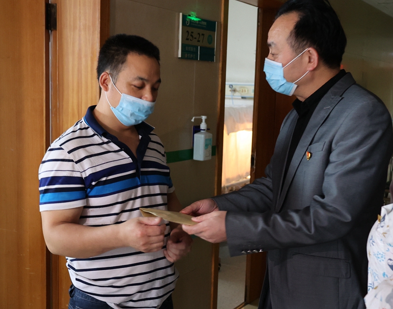 5月26號(hào),市城建投公司黨委委員、監(jiān)事會(huì)主席劉運(yùn)祥帶領(lǐng)部分黨員代表到懷化市第一人民醫(yī)院看望溆浦縣龍?zhí)舵?zhèn)諶孫華一家并送去了善款一萬(wàn)余元,盡綿薄的力量緩解諶孫華一家燃眉之急。